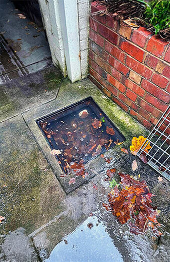 Urgent unblocking of stormwater pits and grated inlets clogged with leaves, debris or sediment during storms to prevent backflow and surface flooding.